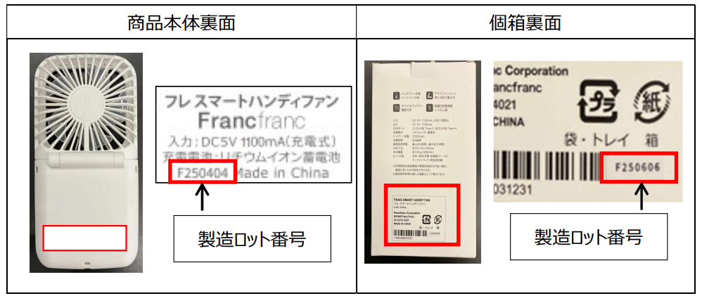 このたび、弊社が2025年3月から6月まで販売いたしました「フレ スマートハンディファン(2025年製)」につき、商品不良(充電ICの不具合による動作不良や発熱など)の発生率が高い状況にあることから、関係省庁との協議を踏まえ、対象商品を自主回収することといたしました。