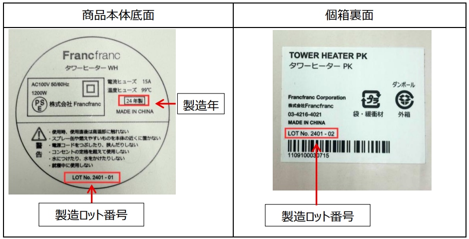 このたび、弊社が2024年9月から2025年12月まで販売いたしました「タワーヒーター(2024年製)」につき、製造工程での配線結合不良による動作不良や、発熱により本体の一部に熱変形が発生した商品が見つかりましたので、対象商品を自主回収することといたしました。
