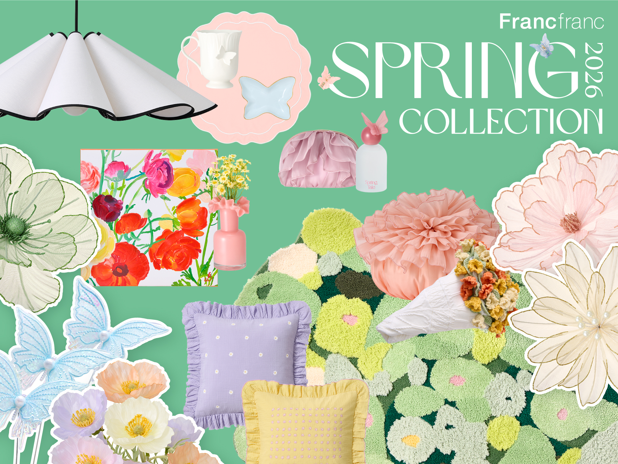 ライフスタイルを提案するインテリアブランド『Francfranc(フランフラン)』は、お花や蝶をモチーフにした春の新商品2026 Spring Collectionを、全国のFrancfranc店舗にて2026年1月23日(金)より展開、Francfrancオンラインショップでは2026年1月14日(水)より順次展開します。