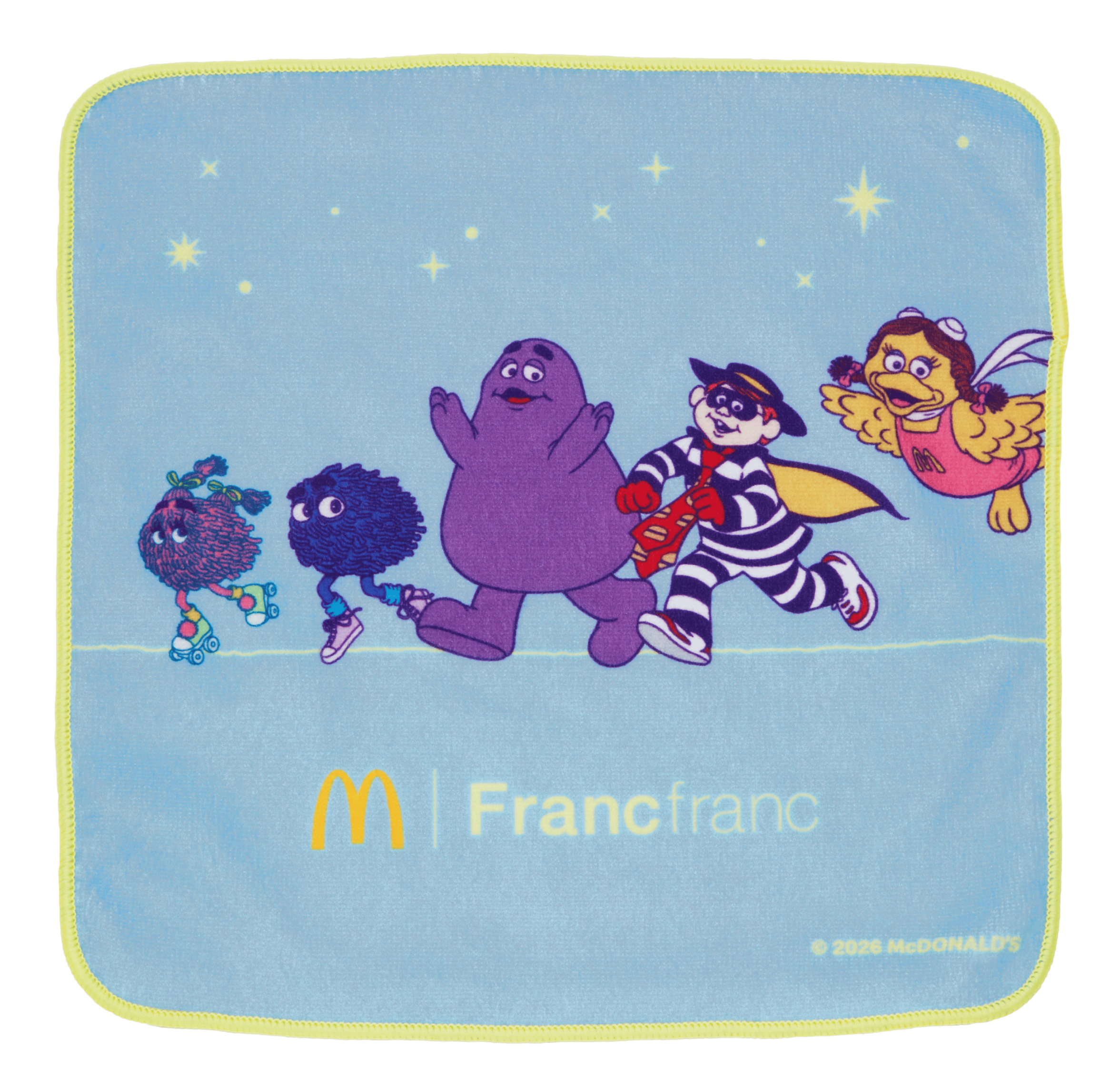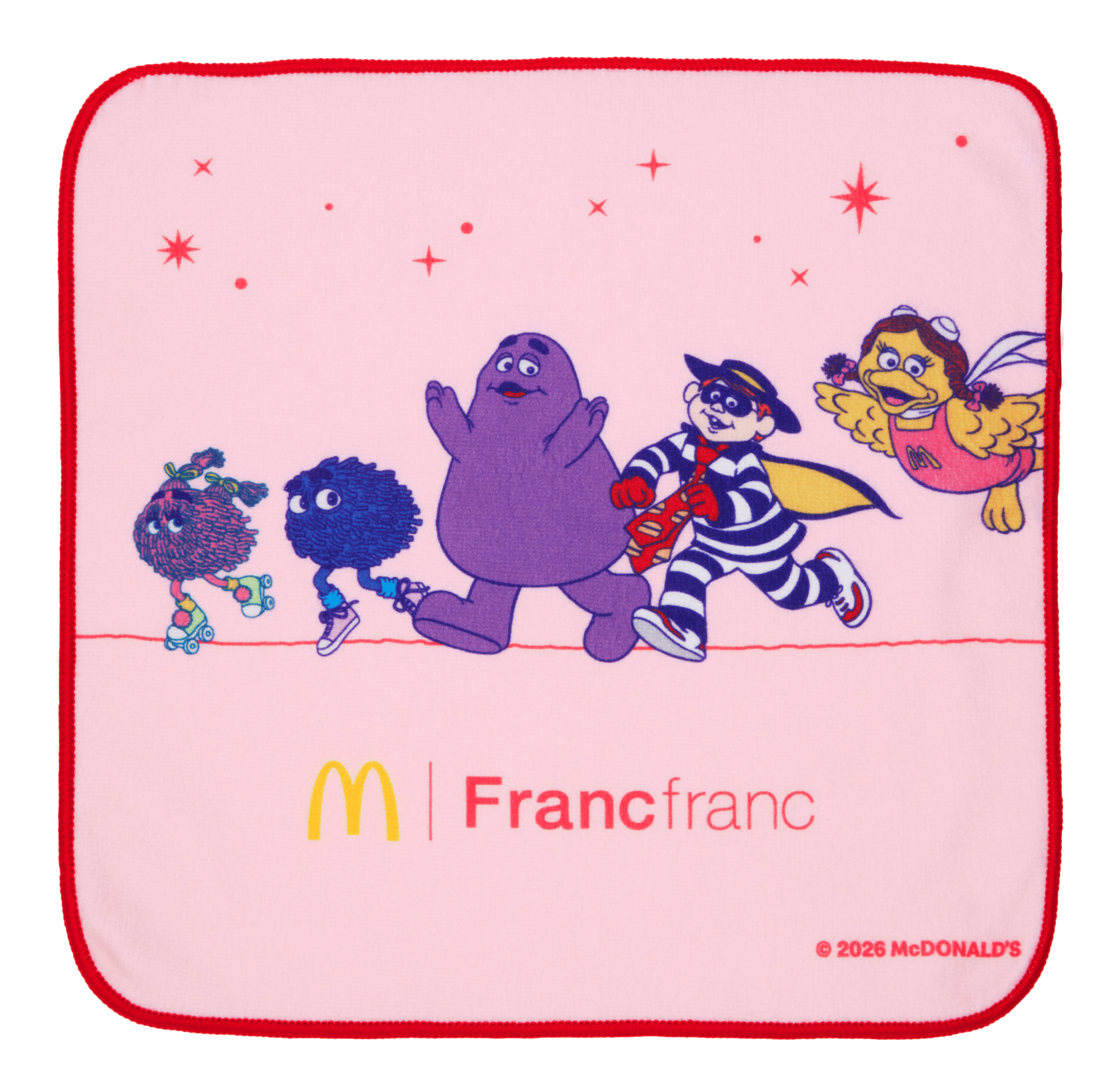 マクドナルド公式アプリにて、コラボレーションしたオリジナルアイテムを含む「マクドナルドの福袋2026」を12月1日(月)14:00より、事前抽選販売受付開始します。マクドナルドの人気商品やキャラクターをモチーフに、Francfrancらしいカラーリングで「ビッグな保温・保冷バッグ」、「ハンドタオル」、「ビッグマックスープジャー」の3種のアイテムをご用意しました。実用性がありながら、心高鳴るカラーリングのアイテムで、楽しいお出かけやお食事のひとときをお過ごしください。