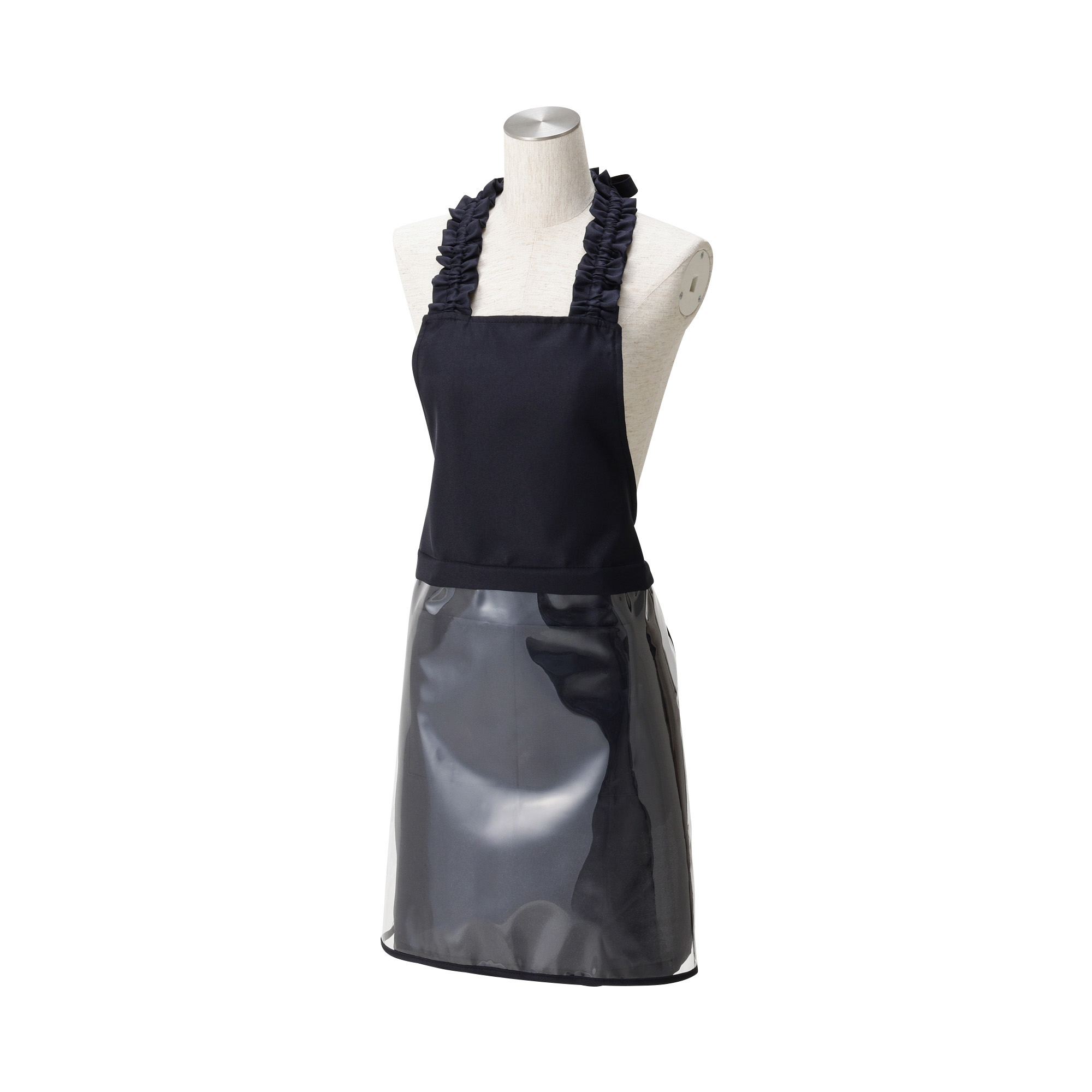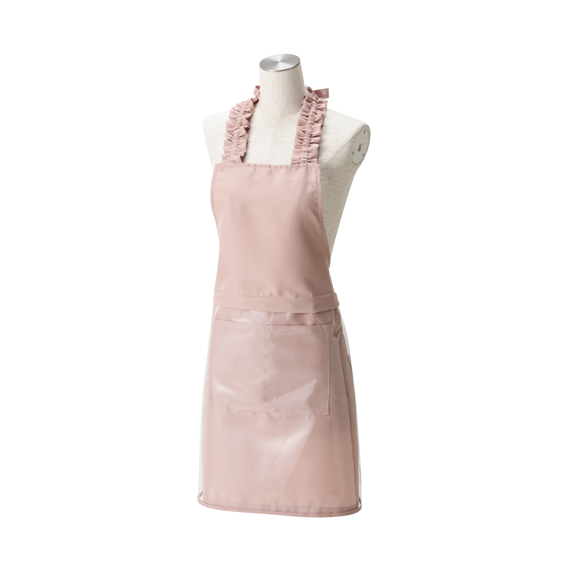 腰から下をカバーする取り外し可能なビニールガードが付いた、2WAY仕様のお掃除エプロンです。
